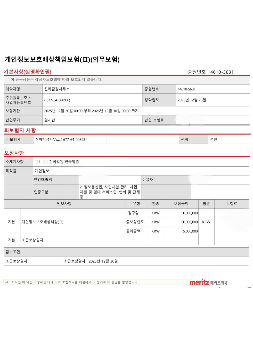상호명. 진짜탐정사무소